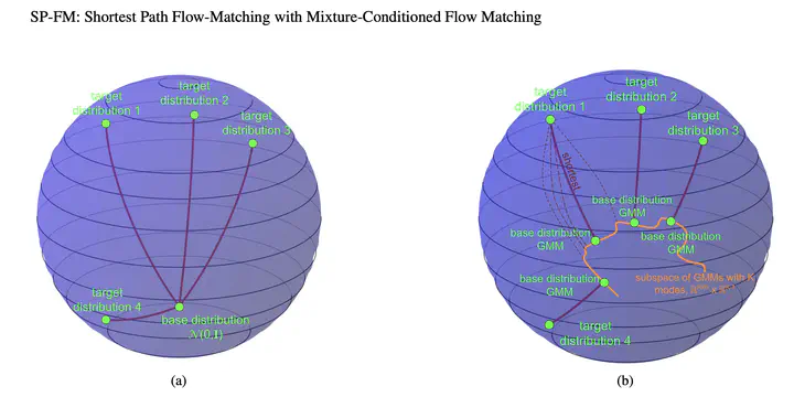 Robust generalization under distribution shift remains a key challenge for conditional generative modeling: conditional flow-based methods often fit the training conditions well but fail to extrapolate to unseen ones. We introduce SP-FM, a shortest-path flow-matching framework that improves out-of-distribution (OOD) generalization by conditioning both the base distribution and the flow field on the condition. Specifically, SP-FM learns a condition-dependent base distribution parameterized as a flexible, learnable mixture, together with a condition-dependent vector field trained via shortest-path flow matching. Conditioning the base allows the model to adapt its starting distribution across conditions, enabling smooth interpolation and more reliable extrapolation beyond the observed training range. We provide theoretical insights into the resulting conditional transport and show how mixture-conditioned bases enhance robustness under shift. Empirically, SP-FM is effective across heterogeneous domains, including predicting responses to unseen perturbations in single-cell transcriptomics and modeling treatment effects in high-content microscopy–based drug screening. Overall, SP-FM provides a simple yet effective plug-in strategy for improving conditional generative modeling and OOD generalization across diverse domains.